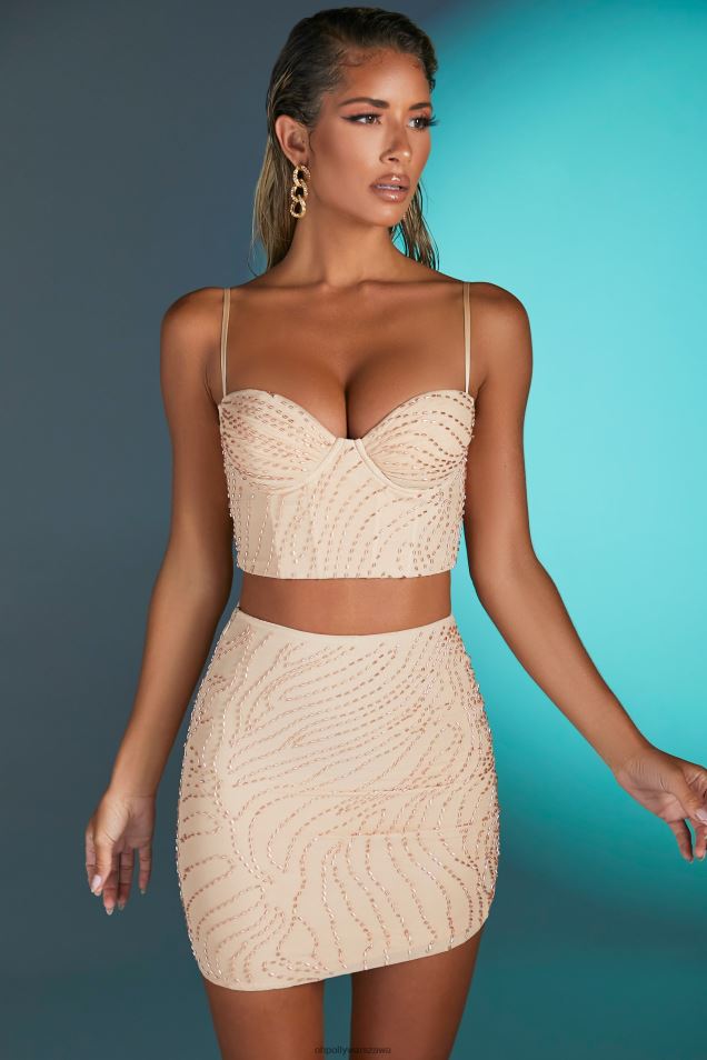 Wykonany z siateczkowej tkaniny z koralikami i dopasowany krój, nasz krótki top Antibes jest wyposażony w ultracienkie ramiączka, które zapewniają niezwykle delikatne wykończenie. Gorsetowy top i podkreślające biust miseczki na fiszbinach dopełniają całości, przenosząc Twój podstawowy krótki top na nowy poziom szyku. uzupełnij stylizację, łącząc ją z naszą dopasowaną, ozdobną mini spódniczką, aby stworzyć podwyższony zestaw.